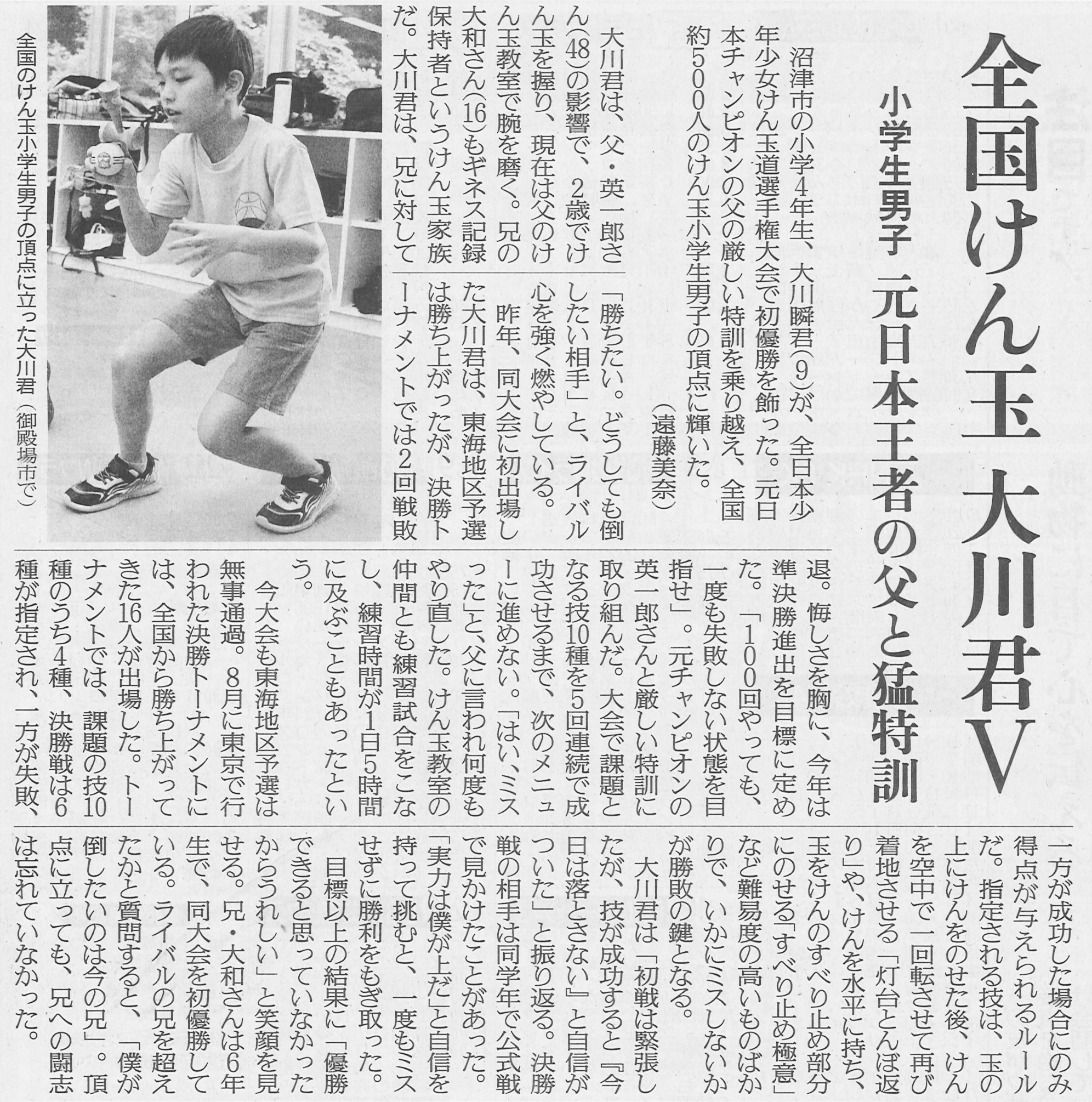 2002年7月6日 | 第14回全日本少年少女けん玉道選手権・全国大会へむけて | 静岡新聞 |