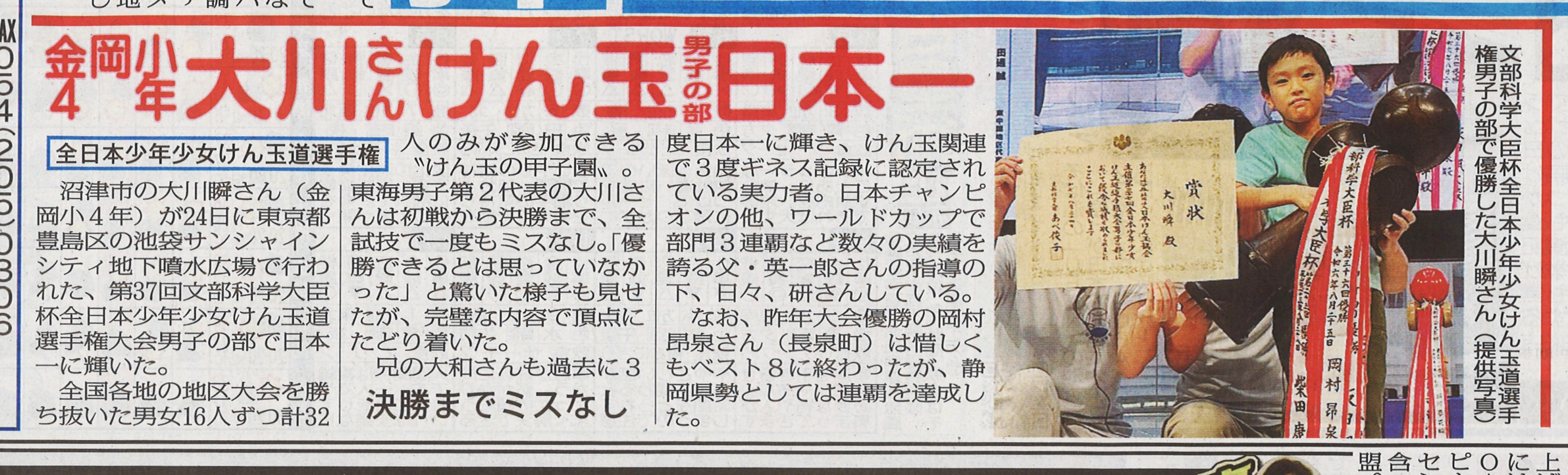 | 2002年7月6日 | 第14回全日本少年少女けん玉道選手権・全国大会へむけて | 静岡新聞 |